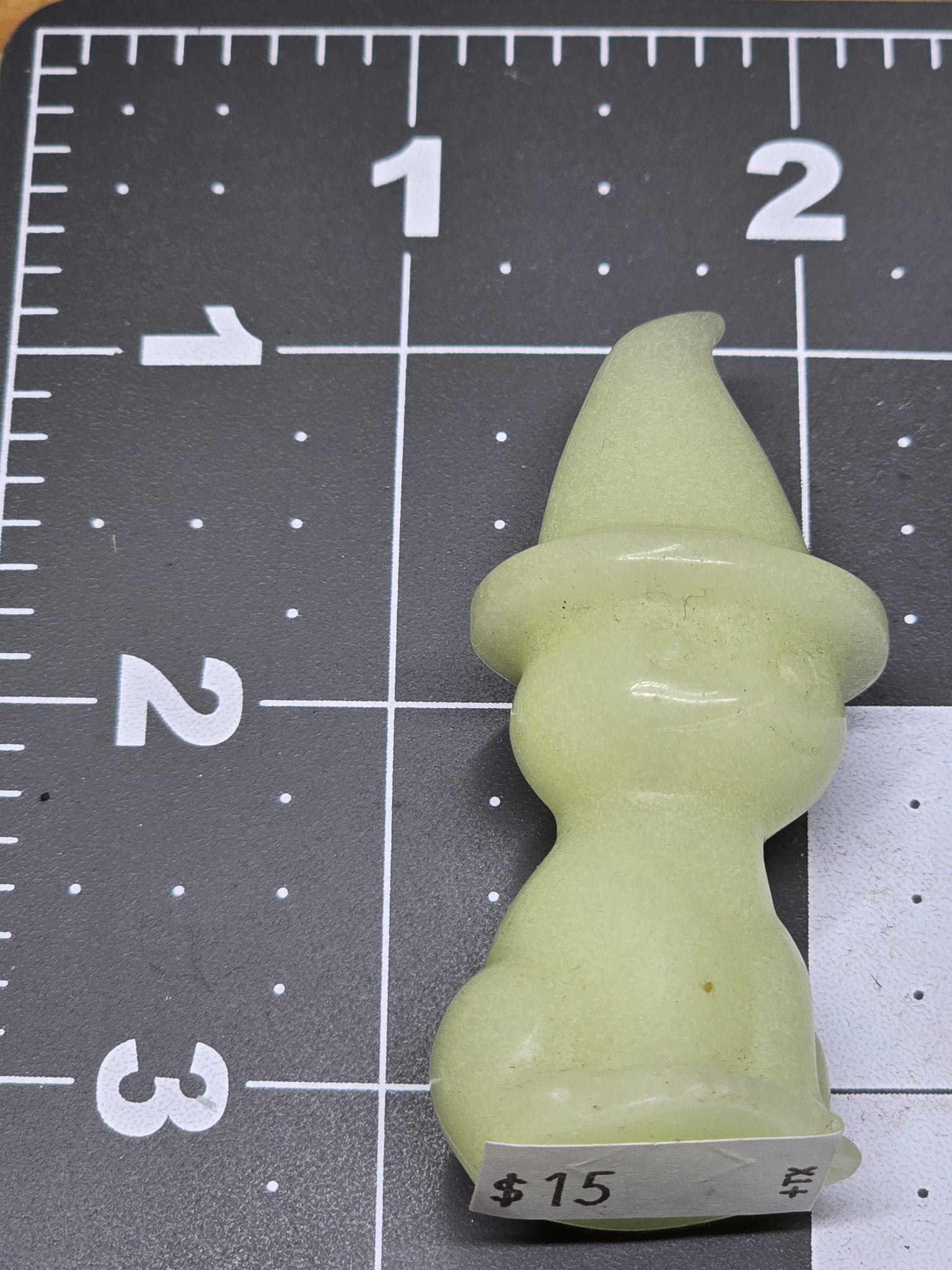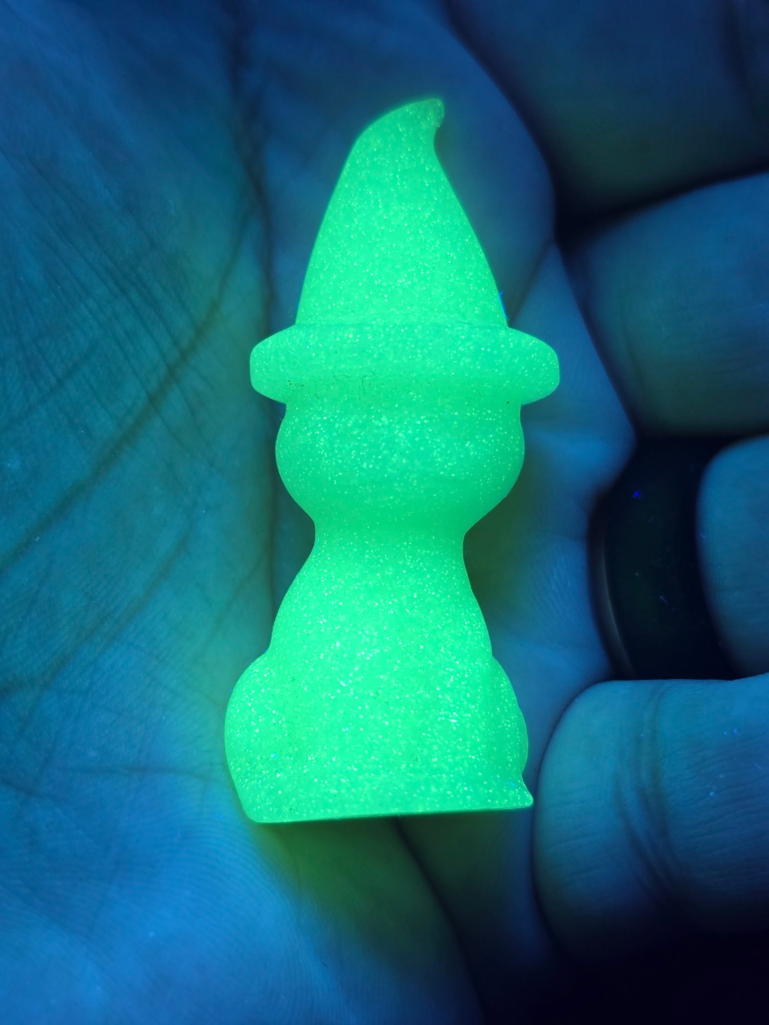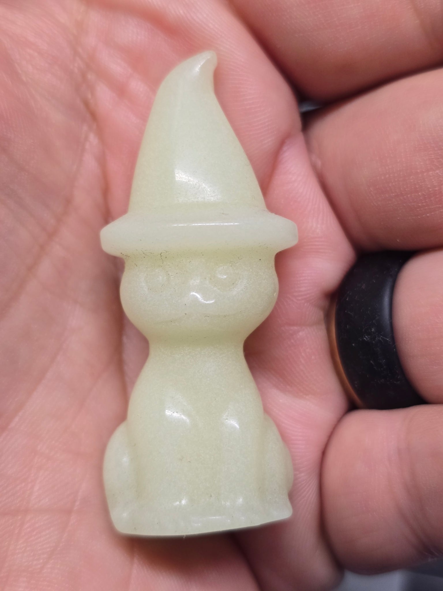 This is a glow in the dark small Halloween Cat in a Hat sculpture that really glows under uv and can be charged with any light source. Will glow for minutes at a time in the dark.