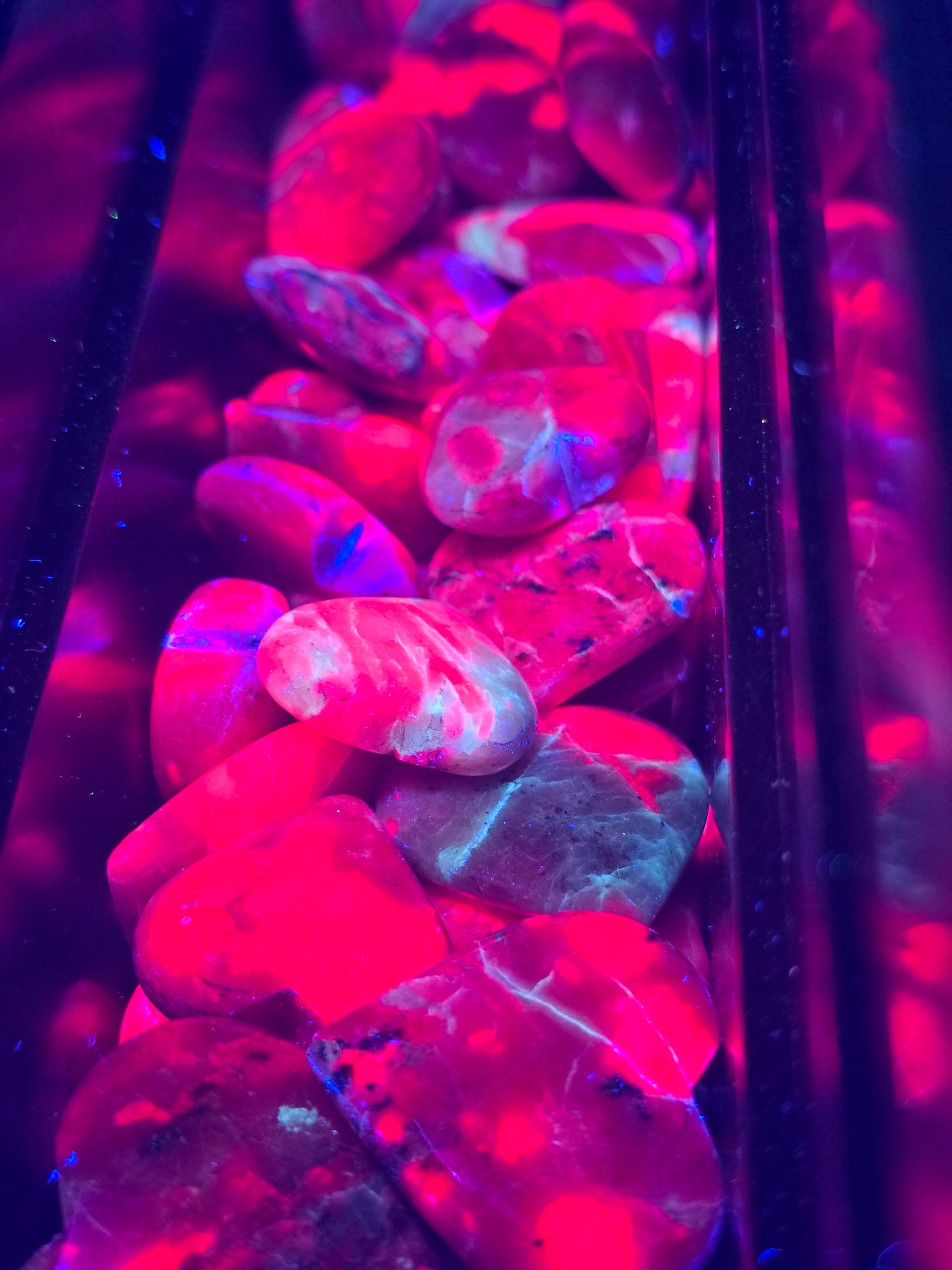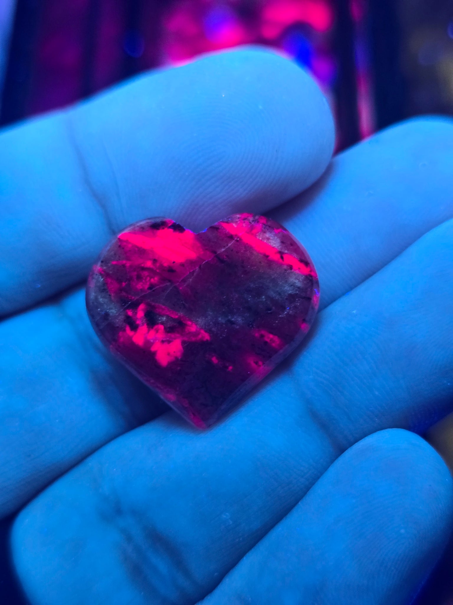 Small Cordorite Ruby hearts. This is for 1 heart. Uv reactive ruby in each one. Natural stones cut and polished into small hearsts.