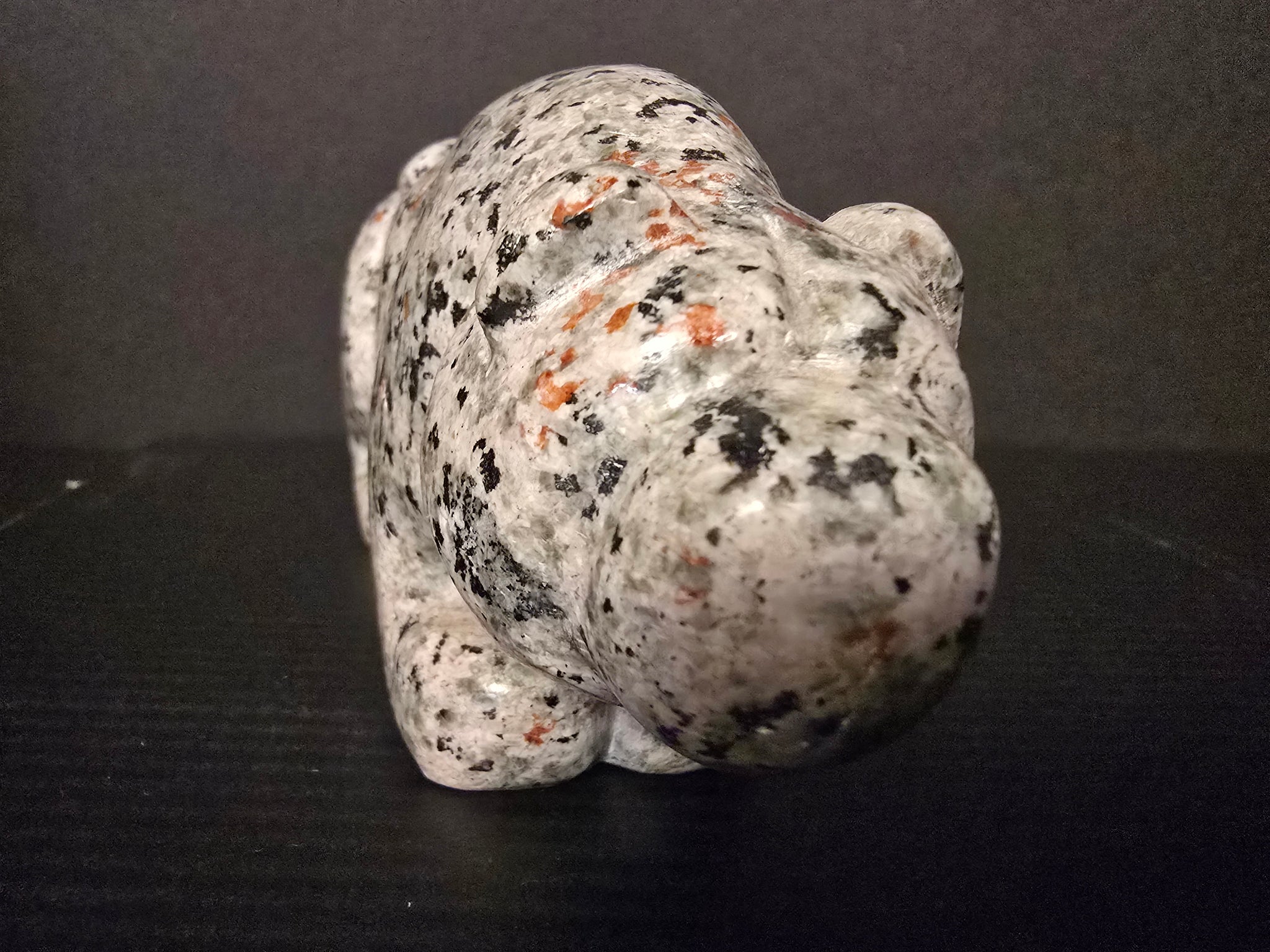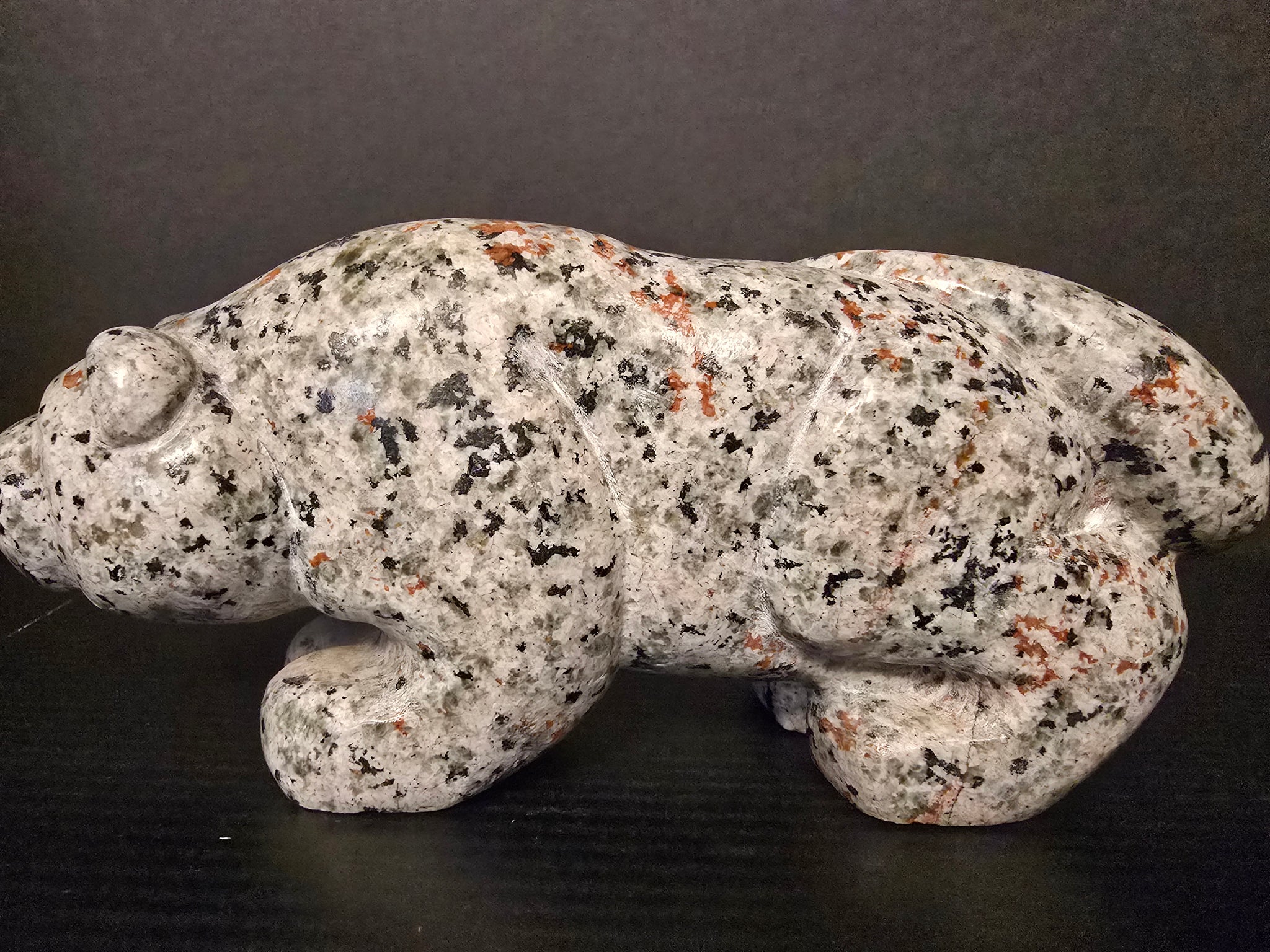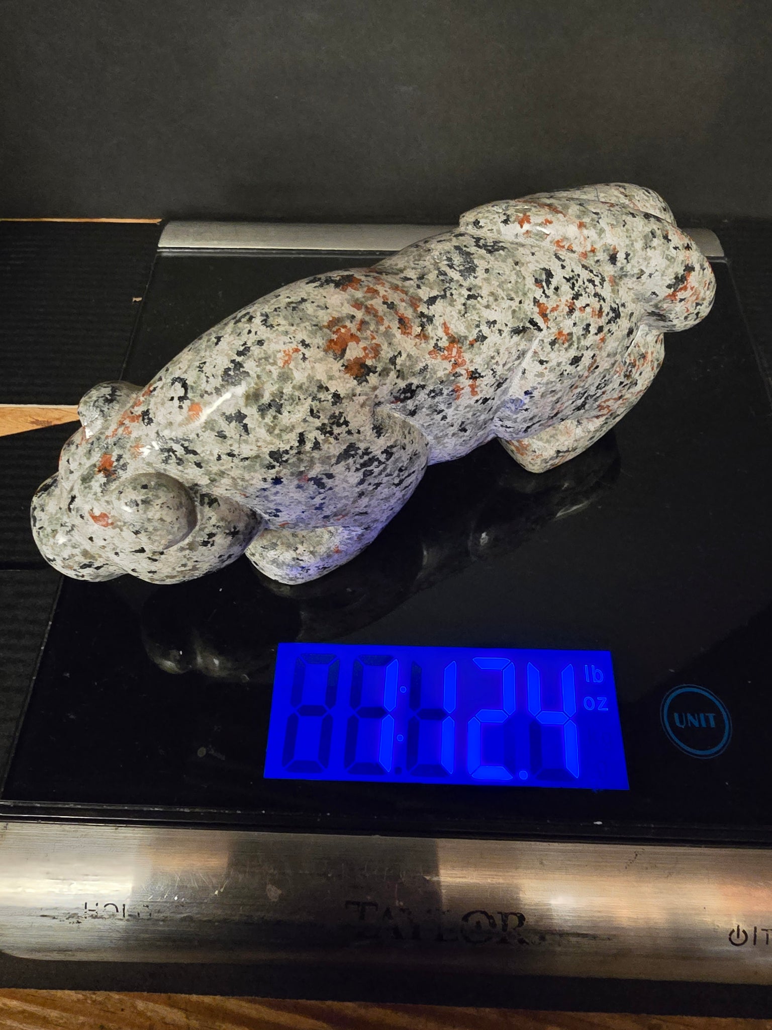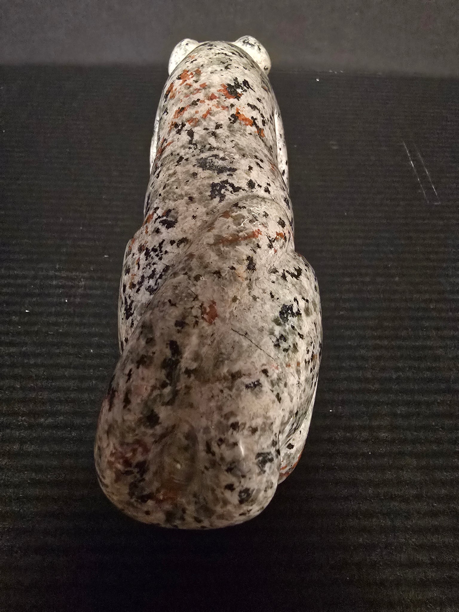 The original stone was found by Erik Rintamaki in 2017 North of Newberry Michigan on Lake Superior. Then it was transformed into this Puma/Panther by Brian Yatsarie of New Mexico into a traditional Zuni stone carving.