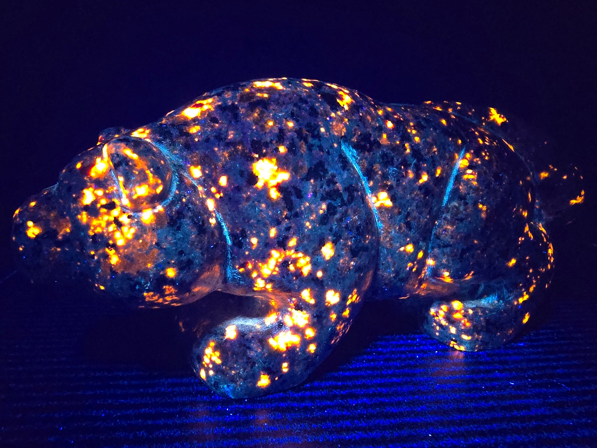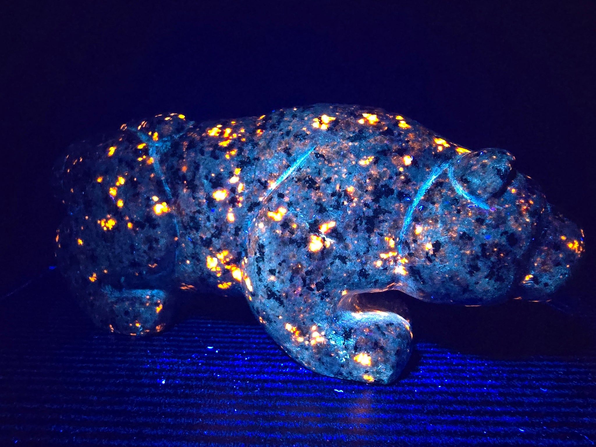Weighing in at 1 pound 12 ounces this large size Puma/Panther carving is one of a kind. With beauty in daylight or under Longwave 365nm Filtered UV light.